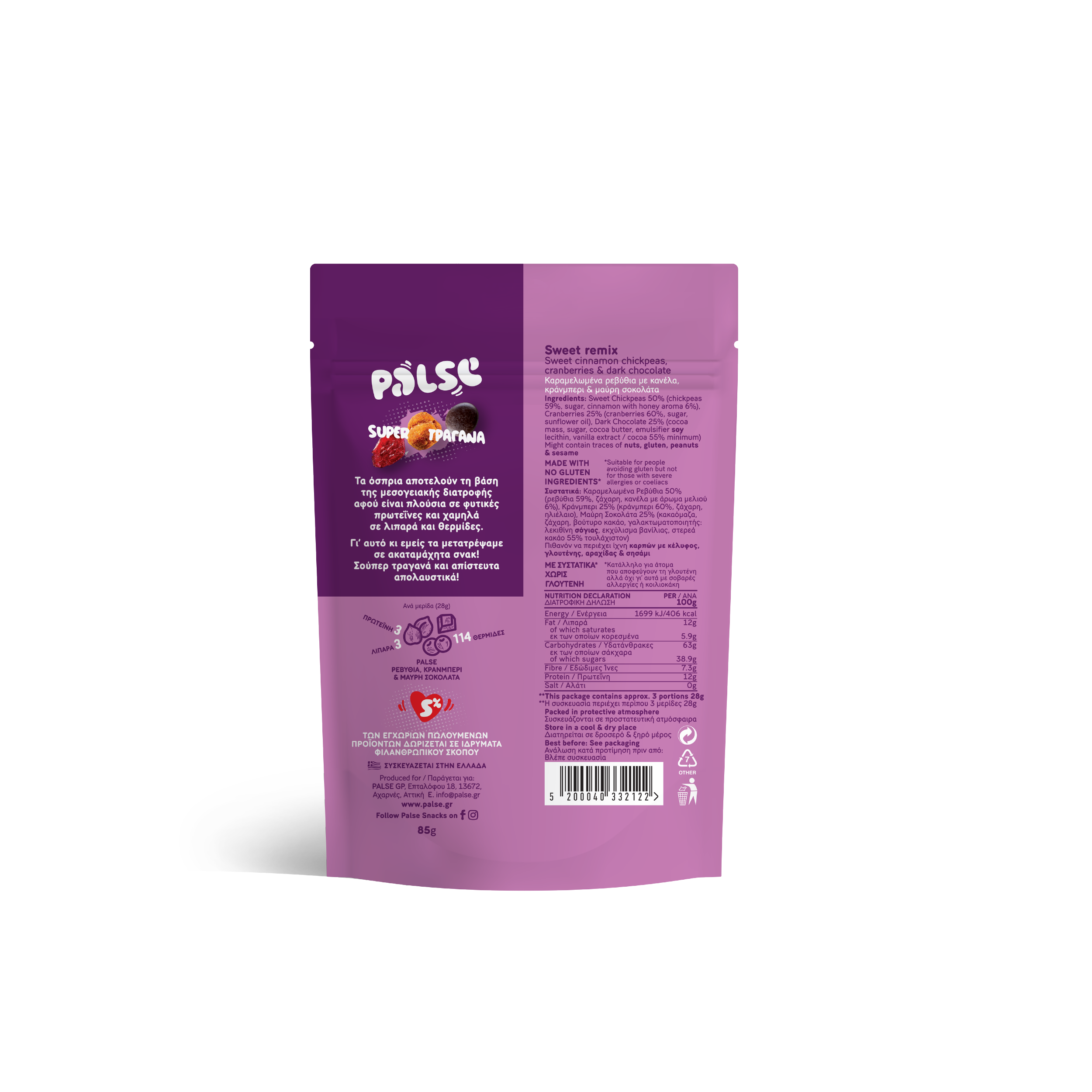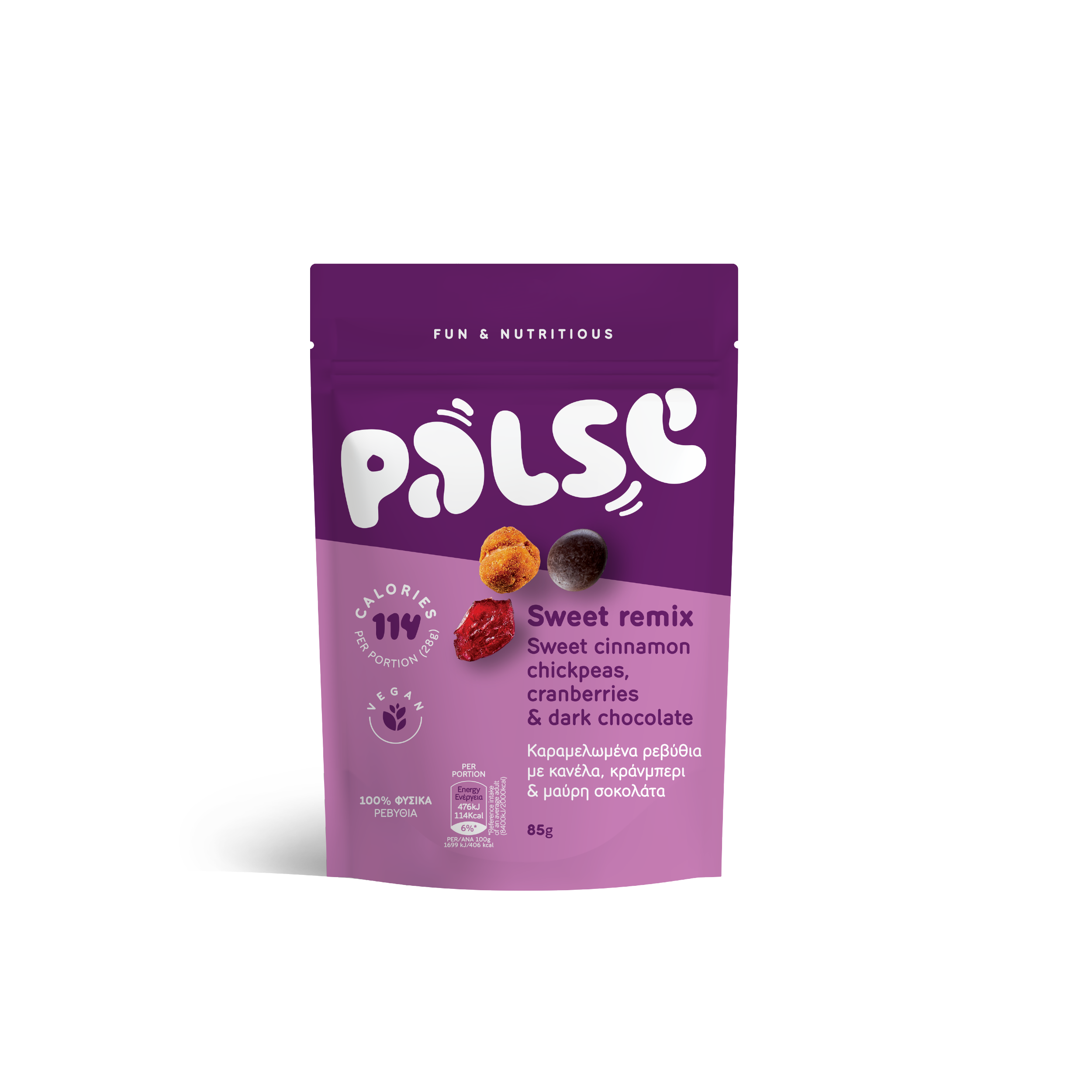 De délicieuses bouchées croustillantes à base de pois chiches sucrés à la cannelle, de cranberry et de chocolat noir. Un goût qui fait monter l’adrénaline, avec seulement 109 calories par portion.